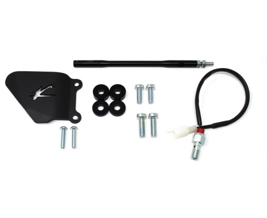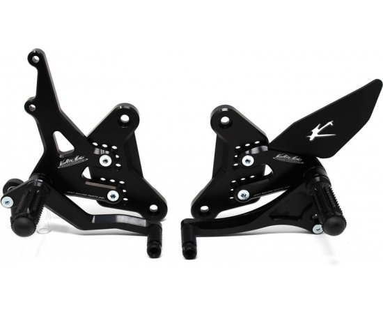 Rearsets are provided with black aluminum heel protections, the correct lenght shift rod, shift and brake ball joints, brake light pressure switch.