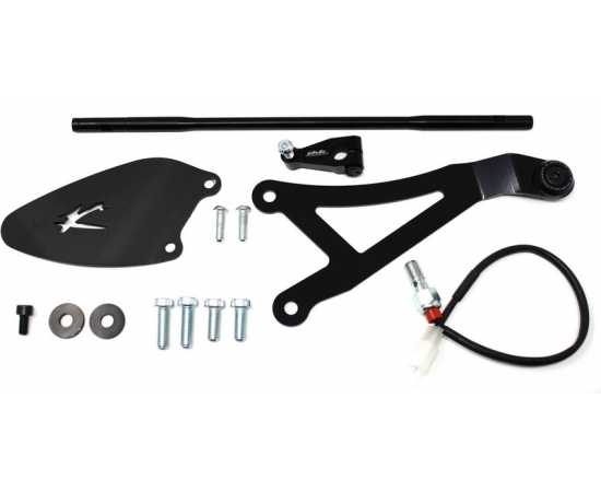 Rearsets are provided with black aluminum heel protections, the correct lenght shift rod, shift and brake ball joints, brake light pressure switch.