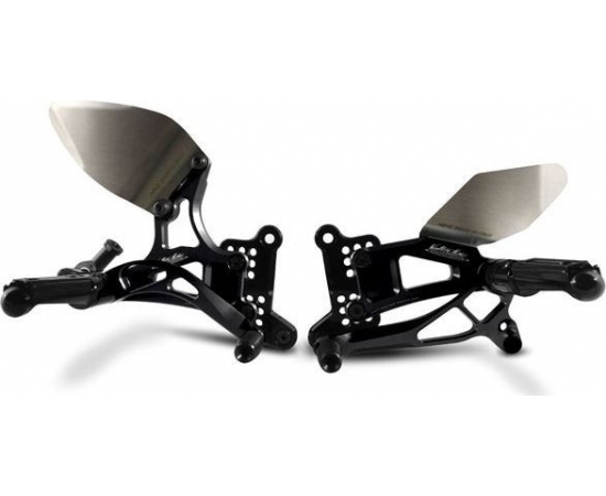 Type 2.5 adjustable rearsets made with Ergal 7075 T5 Alu. Street/Road use. Stainless steel heel protections. Pegs with rubber. Reverse shift. TÜV approved KBA homologated with ABE number.