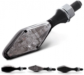 Article Number : IND001 EAN : 8054931058458 Universal 12V Led indicators arrow shaped short stem . Aluminum black body with amber hi-brightness Led, clear lens. Two resistors included E-marked - 2 pcs package Universal 12V Led indicators. Aluminum body - amber Led - clear lens - resistors...