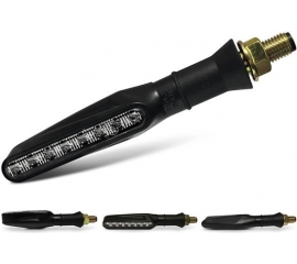 Article Number : IND007 EAN : 8054931087342 Product developed following the the new trend of LED arrows with lateral sliding lighting. Body in abs with dark lens and anti-vibration rubber. The homologation code is embossed on the lens. The article consists of a pair of indicators. LED arrows...